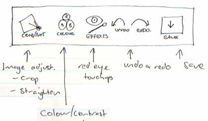 Trying to emulate the interface of iPhoto, but given the size of the screen it didn’t work when mocked up in Photoshop